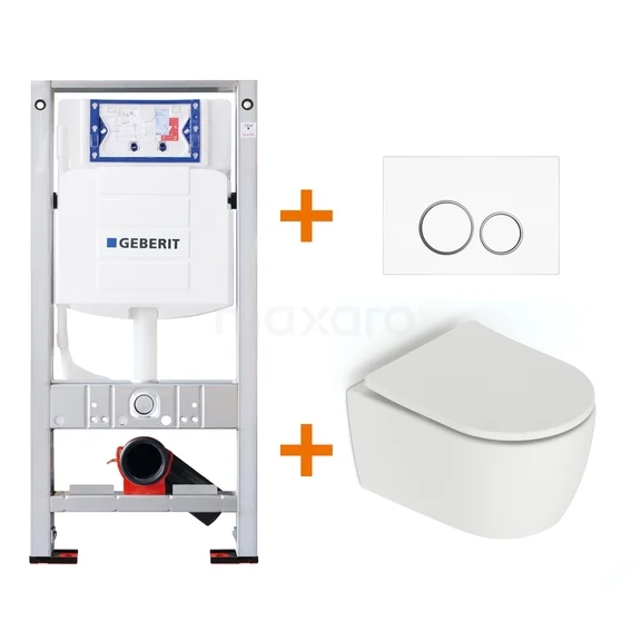 Toiletset Mat wit zonder Spoelrand + Geberit UP320 inbouwreservoir met geluidsisolatie