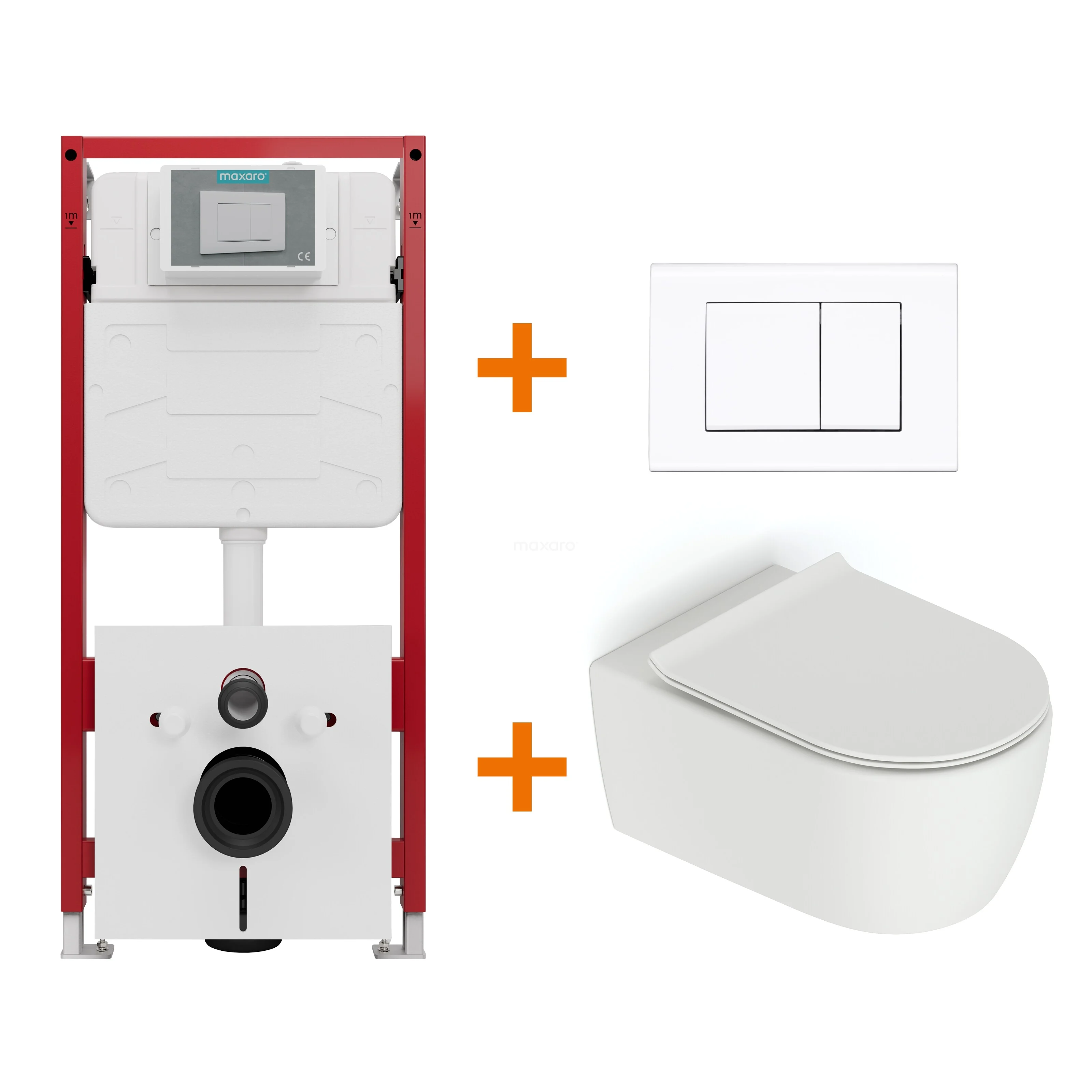 Toiletset Mat wit zonder Spoelrand + Maxaro Flush inbouwreservoir