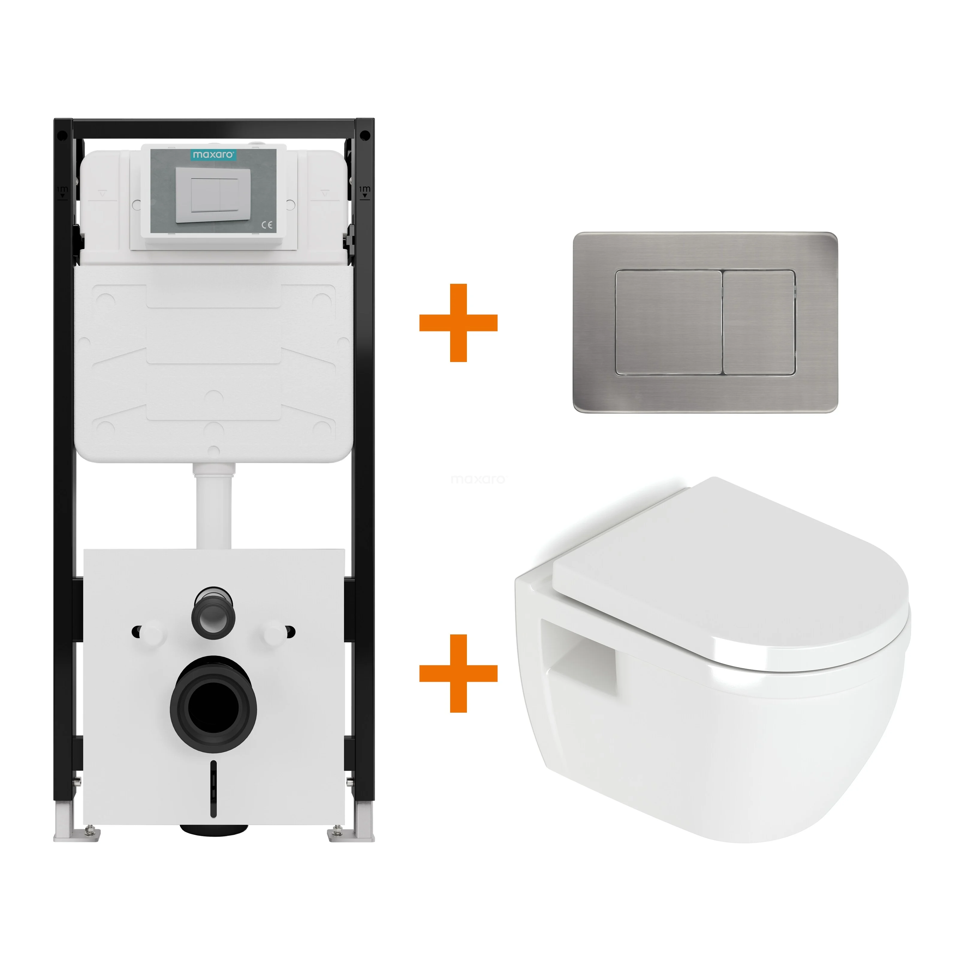 Toiletset Mat wit zonder Spoelrand + Maxaro Flush Slim Pro inbouwreservoir met geluidsisolatie