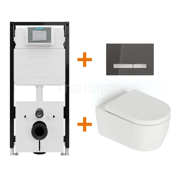 Toiletset Mat wit zonder Spoelrand + Maxaro Flush Slim Pro inbouwreservoir met geluidsisolatie