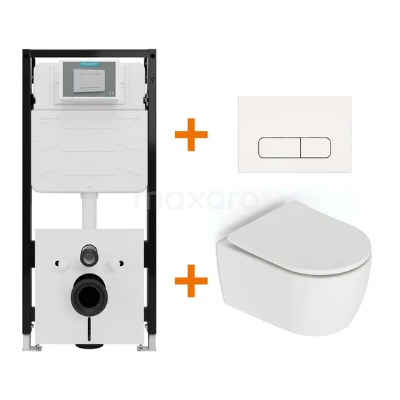 Toiletset Mat wit zonder Spoelrand + Maxaro Flush Slim Pro inbouwreservoir met geluidsisolatie