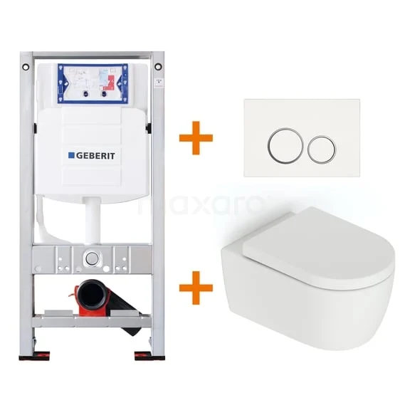 Toiletset Mat wit zonder Spoelrand + Maxaro Flush Slim Pro inbouwreservoir met geluidsisolatie