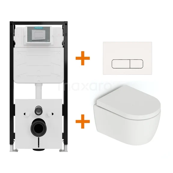 Toiletset Mat wit zonder Spoelrand + Maxaro Flush Slim Pro inbouwreservoir met geluidsisolatie
