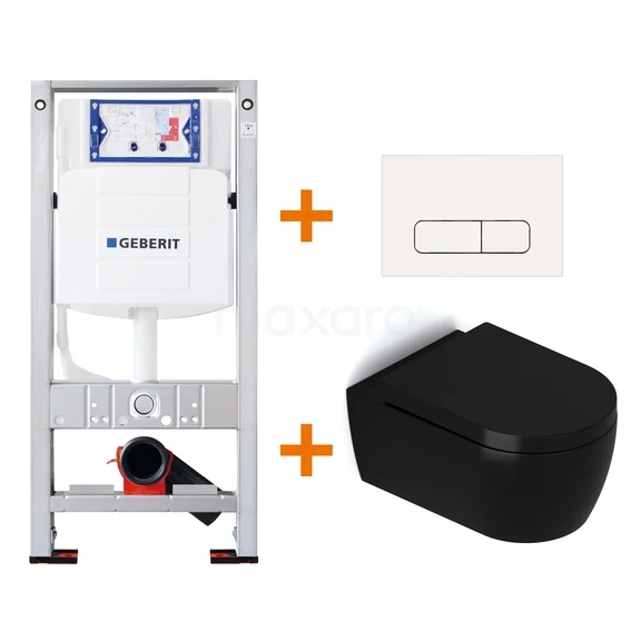 Toiletset Mat zwart met Spoelrand + Maxaro Flush Slim Pro inbouwreservoir met geluidsisolatie