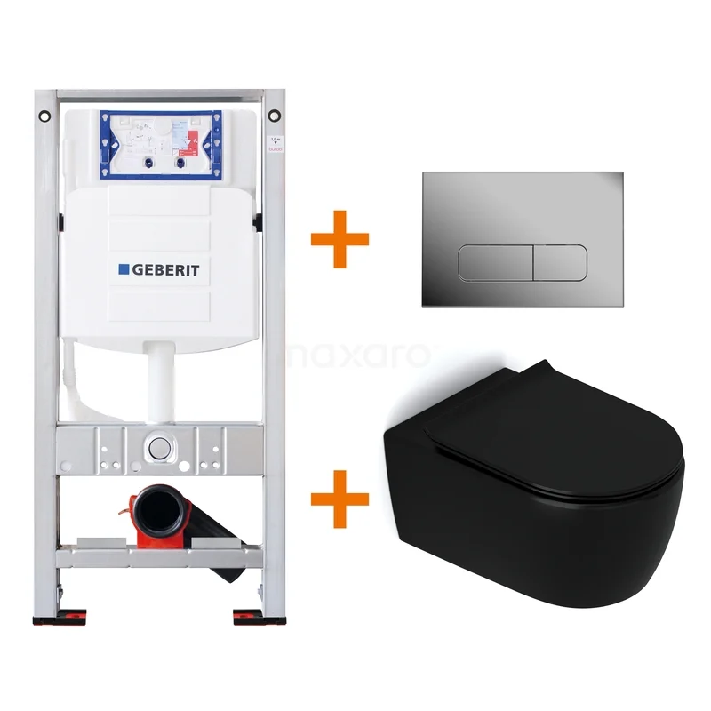 Toiletset Mat zwart zonder Spoelrand + Geberit UP320 inbouwreservoir met geluidsisolatie