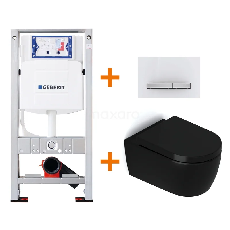Toiletset Mat zwart zonder Spoelrand + Geberit UP320 inbouwreservoir met geluidsisolatie