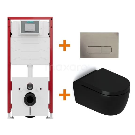 Toiletset Mat zwart zonder Spoelrand + Maxaro Flush inbouwreservoir