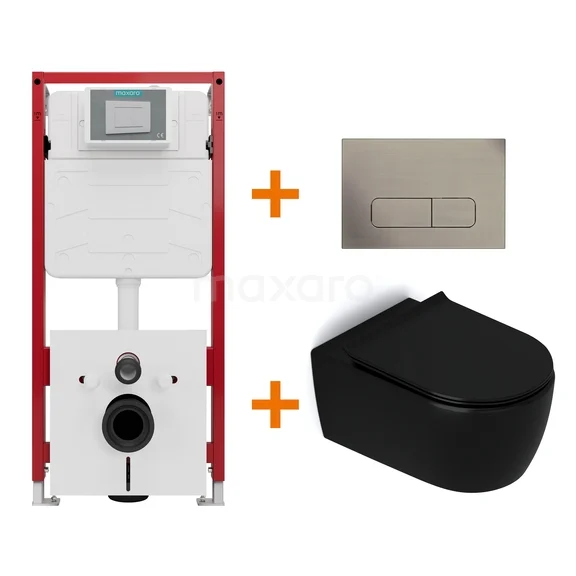 Toiletset Mat zwart zonder Spoelrand + Maxaro Flush inbouwreservoir