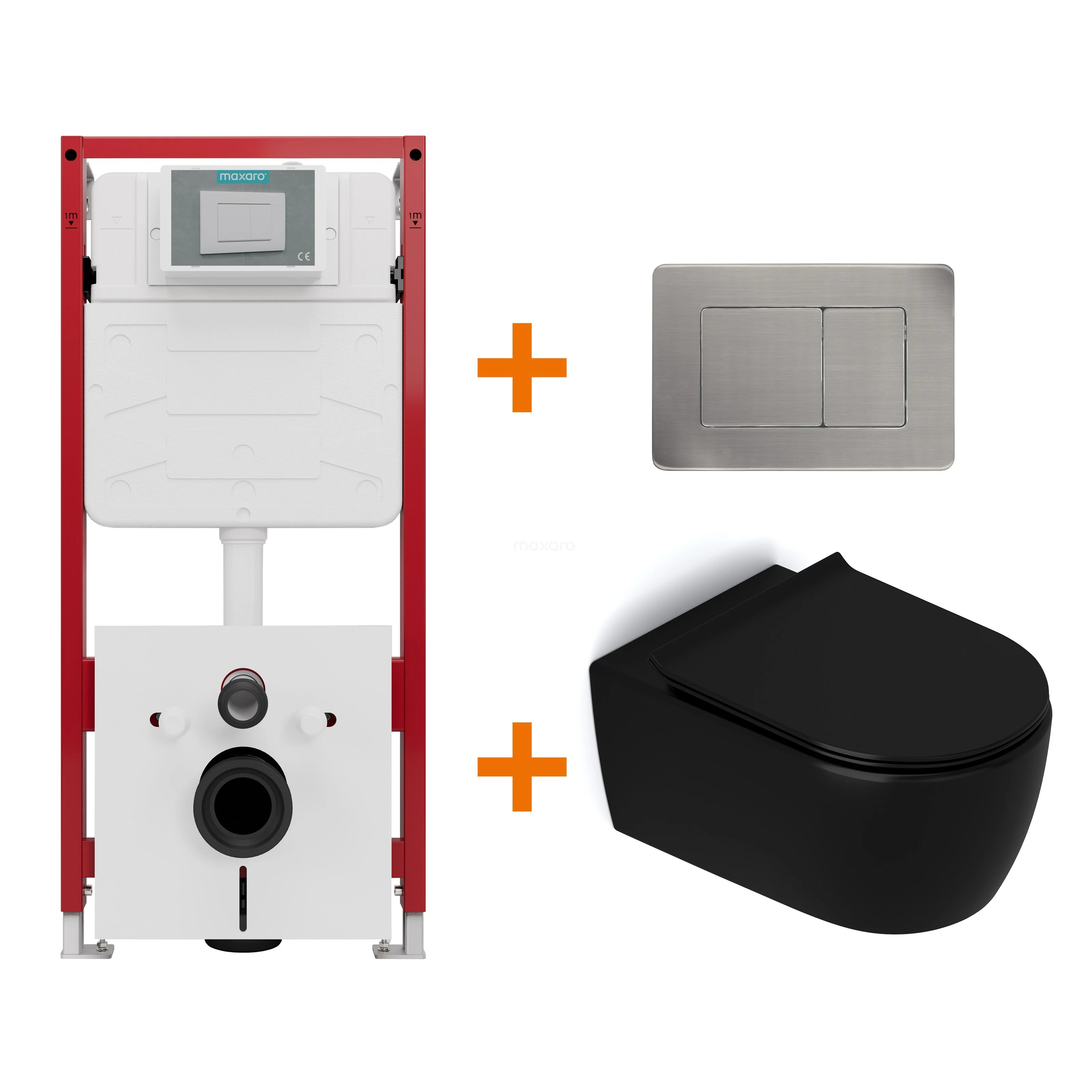 Met deze complete toiletset haal je in één keer alles in huis voor een stijlvol, functioneel en betaalbaar hangtoilet. De set bevat een mat zwart Senza hangtoilet, een softclose toiletzitting, het hoogwaardige Maxaro Flush-inbouwreservoir en een strak vormgegeven bedieningspaneel. Dankzij de perfecte afstemming tussen de onderdelen geniet je van optimale prestaties en comfort, zonder onnodige kosten.