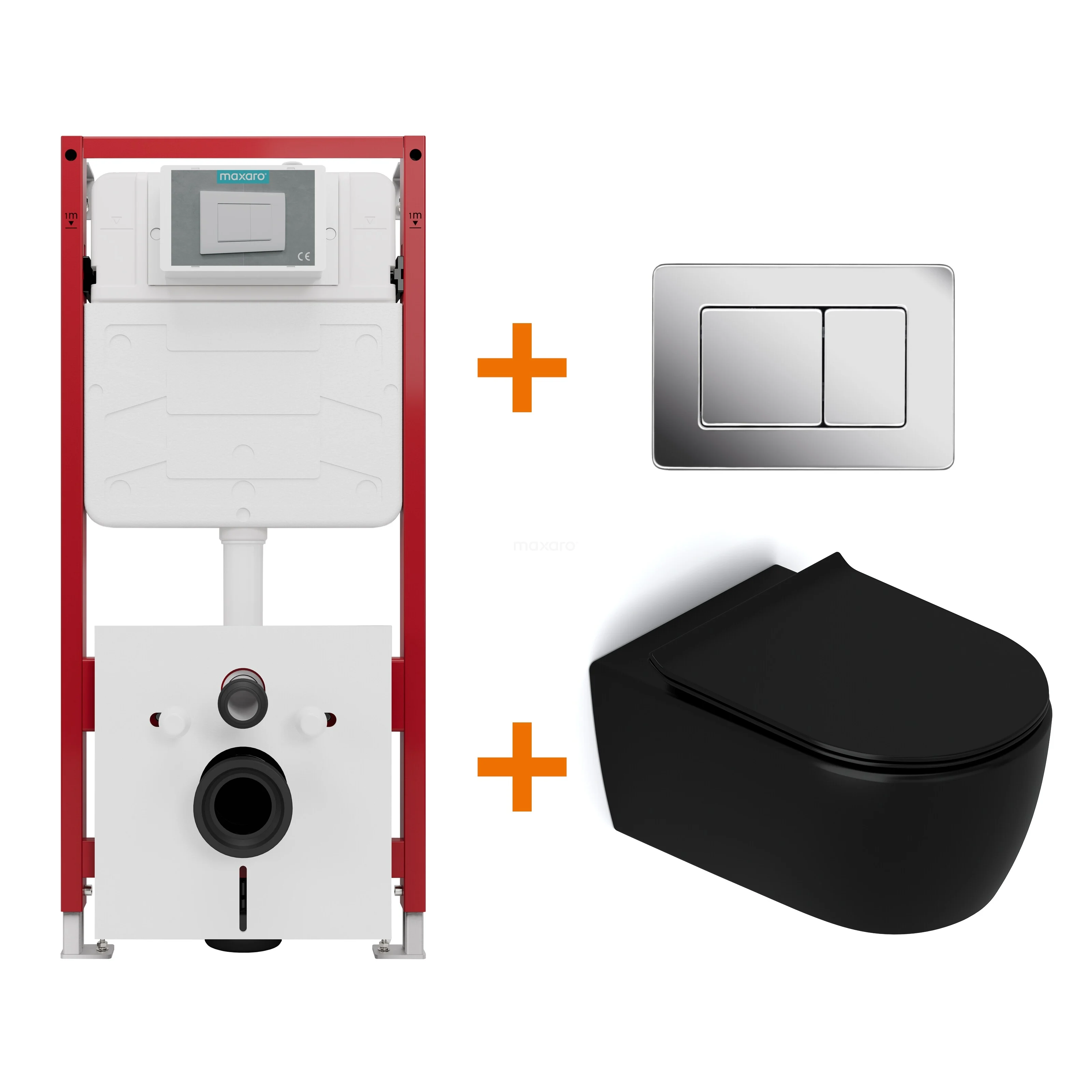 Toiletset Mat zwart zonder Spoelrand + Maxaro Flush inbouwreservoir