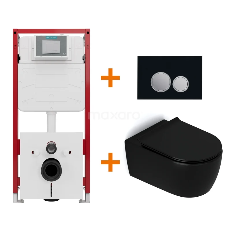 Toiletset Mat zwart zonder Spoelrand + Maxaro Flush inbouwreservoir