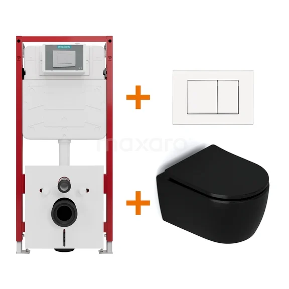 Toiletset Mat zwart zonder Spoelrand + Maxaro Flush inbouwreservoir