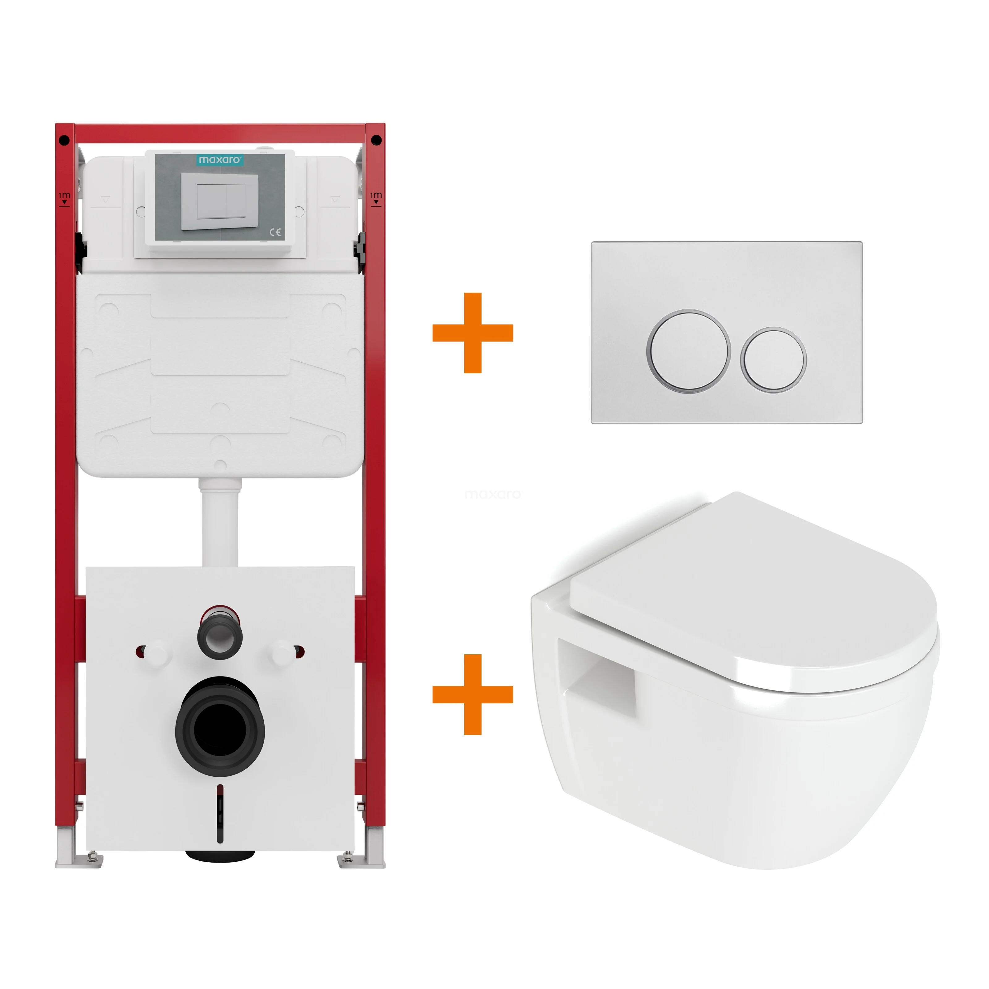 Met deze complete toiletset haal je in één keer alles in huis voor een stijlvol, functioneel en betaalbaar hangtoilet. De set bevat een mat zwart Senza hangtoilet, een softclose toiletzitting, het hoogwaardige Maxaro Flush Pro-inbouwreservoir en een strak vormgegeven bedieningspaneel. Dankzij de perfecte afstemming tussen de onderdelen geniet je van optimale prestaties en comfort, zonder onnodige kosten.