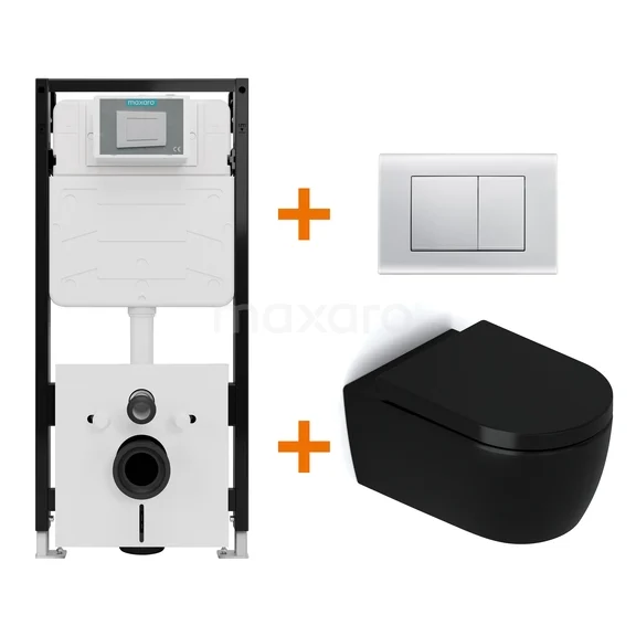 Toiletset Mat zwart zonder Spoelrand + Maxaro Flush Pro inbouwreservoir met geluidsisolatie