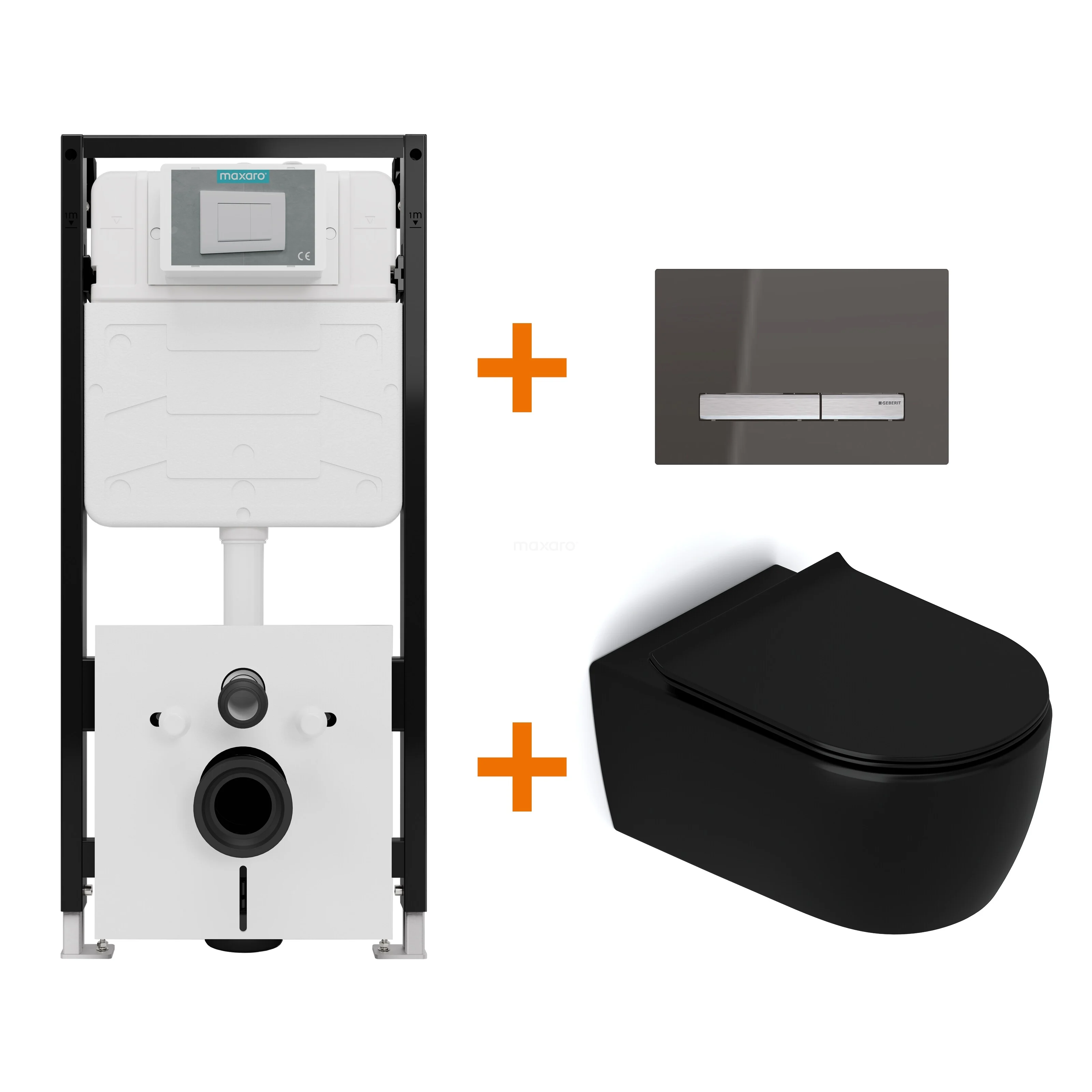 Toiletset Mat zwart zonder Spoelrand + Maxaro Flush Pro inbouwreservoir met geluidsisolatie