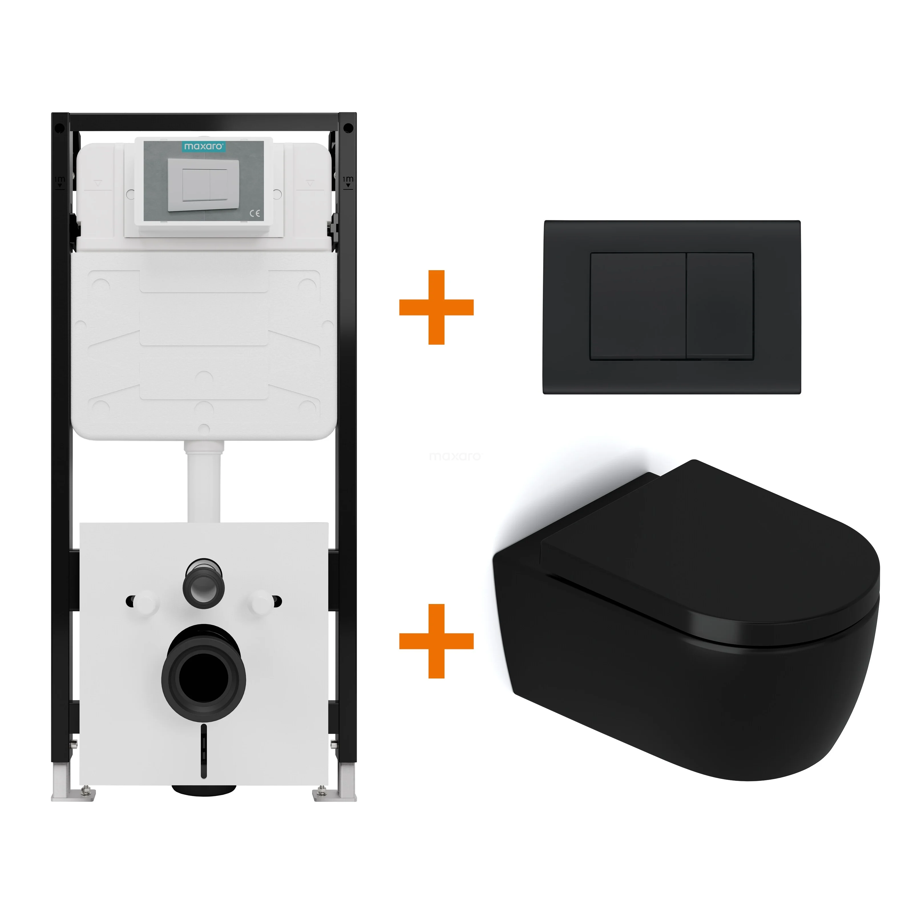 Met deze complete toiletset haal je in één keer alles in huis voor een stijlvol, functioneel en betaalbaar hangtoilet. De set bevat een mat zwart Senza hangtoilet, een softclose toiletzitting, het hoogwaardige Maxaro FLush Slim Pro-inbouwreservoir en een strak vormgegeven bedieningspaneel. Dankzij de perfecte afstemming tussen de onderdelen geniet je van optimale prestaties en comfort, zonder onnodige kosten.